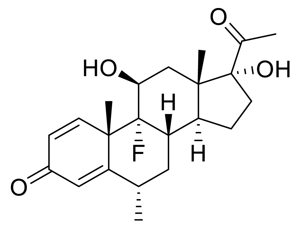 1. Marcos-Escribano A, Bermejo FA, Bonde-Larsen AL, Retuerto JI. Chemoselective hydrogenation of 17α-hydroxy-6-methylen-pregna-4,9(11)-diene-3,20-dione. Synthesis of fluorometholone. Tetrahedron. 2009;65:8493–8496.