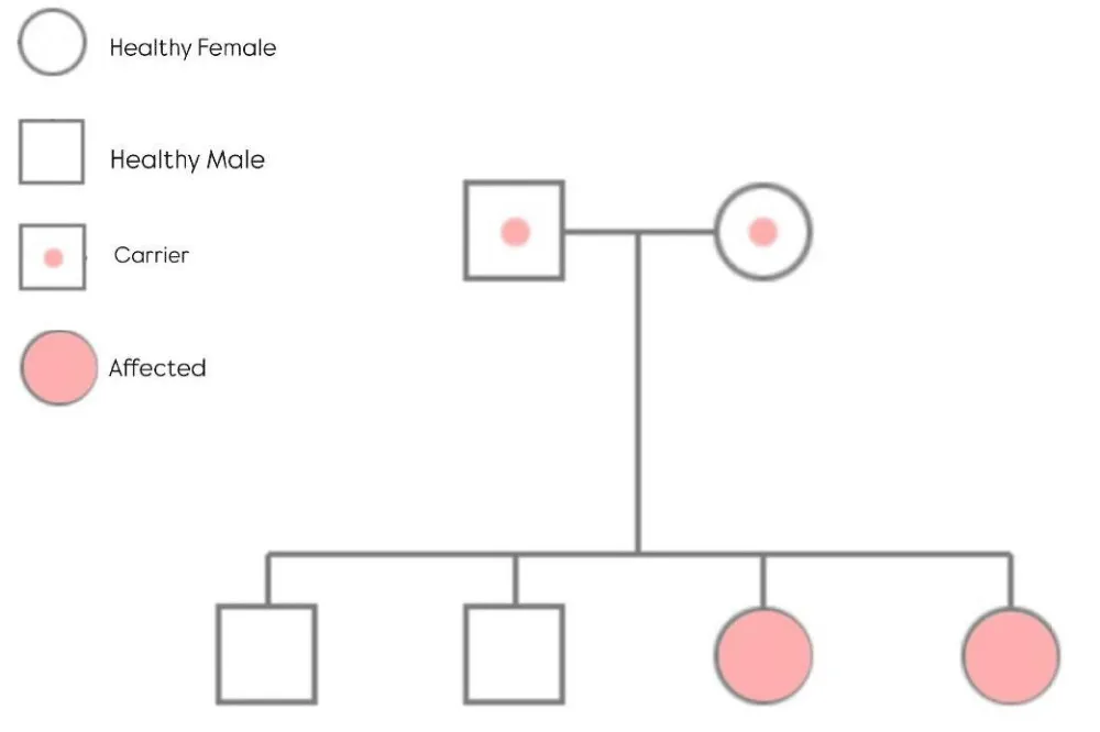 Figure 1: This pedigree highlights the autosomal recessive transmission of the OTUD6B-related disorder within the family.