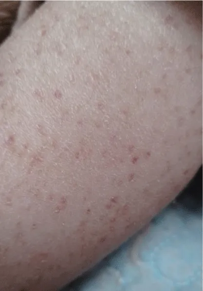 Figure 4: Purpuric rash with dry skin in the patient’s forearm, who presented with epistaxis and hematemesis.
