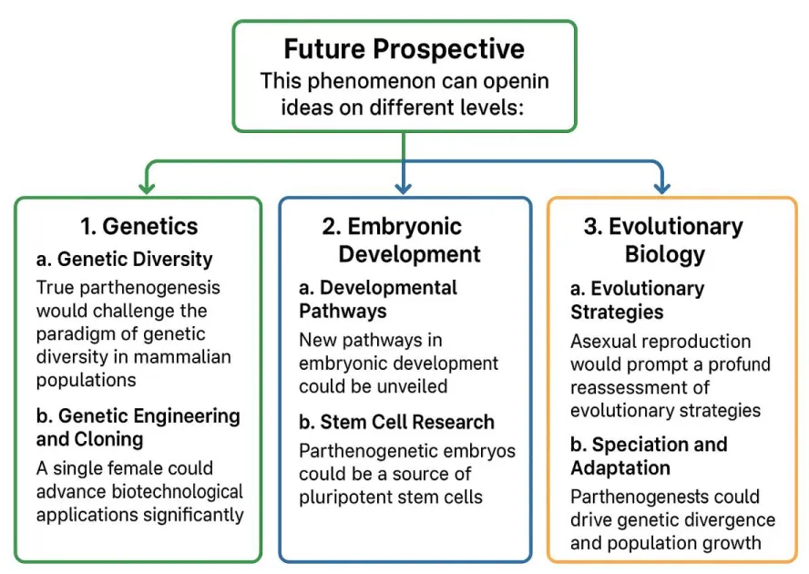 Recent advances in mammalian biology suggest that although natural parthenogenesis in mammals is generally considered highly unlikely due to genomic imprinting and developmental constraints, experimental evidence demonstrates that parthenogenetic development can be induced under controlled conditions, and in some cases, viable offspring have been produced [31]. This indicates that while rare and constrained, the possibility of parthenogenesis in mammals should not be dismissed entirely and could have important evolutionary and biomedical implications.
