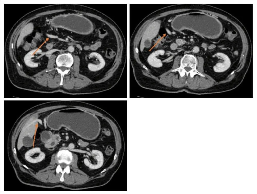 Figure 4: CT scan presenting the extrahepatic interportal anastomotic vein.