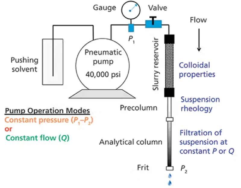 Figure 2: Schematic diagram showing analytical packing system showing major components required for high efficiency packing [62].